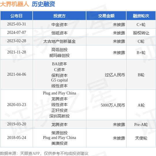 证券之星消息,根据天眼查APP于3月31日公布的信息整理,上海大界机器人科技有限公司C+轮融资,融资额未披露,参与投资的机构包括中金资本。
